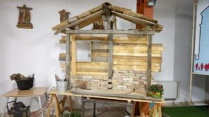 Oggi in ritardo … stiamo costruendo il presepe nel nostro “scantinato-Chiesa” …