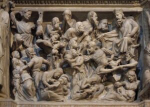 Pulpito della Chiesa di S. Andrea a Pistoia (1301). Capolavoro di Giovanni Pisano. Formella della “Strage degli Innocenti” Leggi tutto
